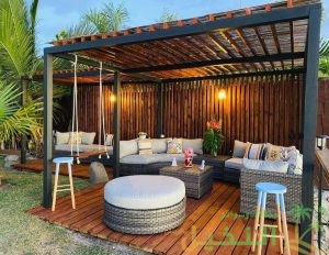 إضافة إلى أنك لن تتمتع بخصوصية كاملة حيث يتلصص عليك كل من يمر في المكان؛ لذلك أفضل حلًا نقدمه إليك هو برجولات الحدائق فهي لا تتمتع بمظهر أنيق، وشكل عصري فقط، بل هي متينة، واستثمار طويل الأمد؛ لأنها مصنوعة من خامات مستدامة صديقة للبيئة، كما أنها توفر نسبة ظل عالية جدًا، وحماية متكاملة من الأتربة والغبار.